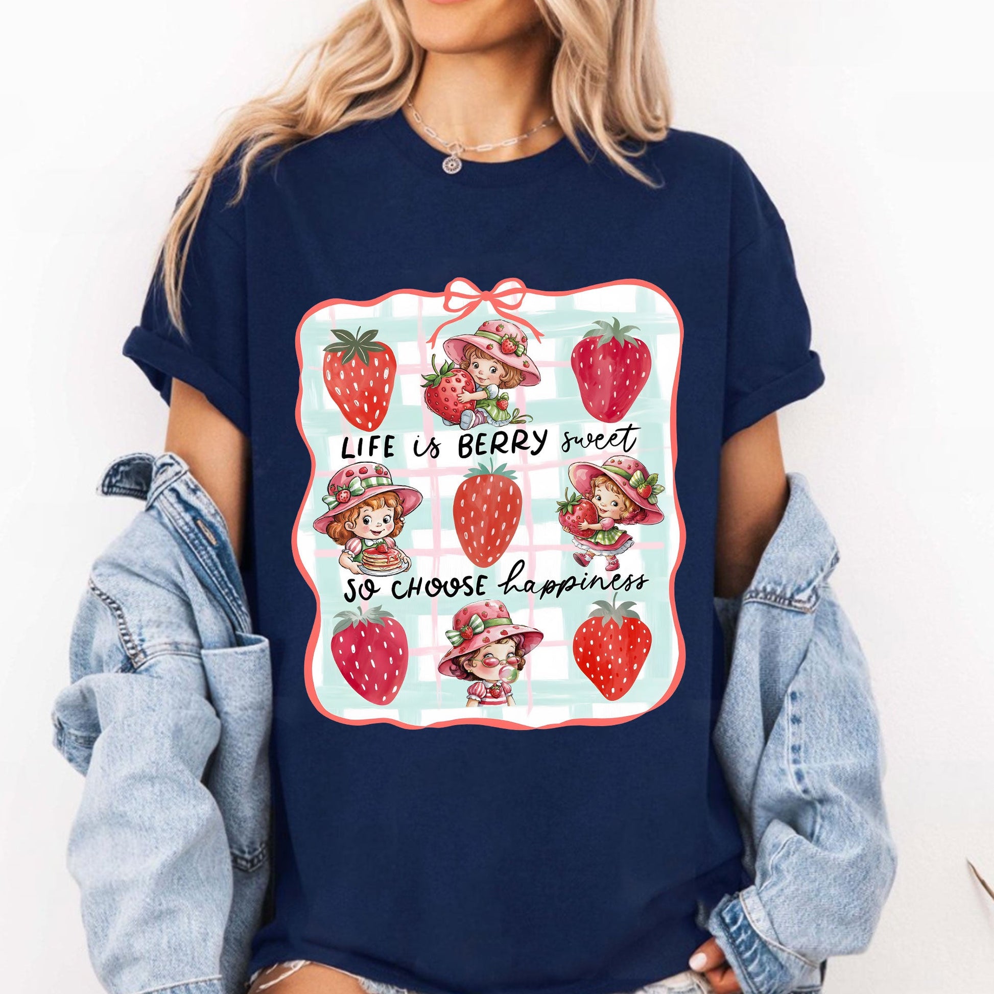 Celebrate sweetness and positivity with our Life Is Berry Sweet T-Shirt! Featuring charming cartoon girls in strawberry hats and juicy red berries, this tee brings cozy nostalgia and cheerful vibes to your everyday look. The quote “Life is berry sweet, so choose happiness” reminds us to find joy in the little things—like berries and smiles.